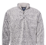 J-America Adult Epic Sherpa Quarter Zip. 9.0 oz. High loft Polyester Sherpa. 1/4 Zip placket & self fabric collar. Set-in sleeves & sideseam waist vents.