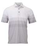 Paragon Adult Belmont Middle Stripe Polo. Designer patterns elevate this new sublimated heather polo. Surprisingly soft with a tailored fit, it's built to stand up to wear and stretching while keeping its crisp edge. 95% Microfiber Polyester/5% Spandex. Features a fashion self collar and hemmed sleeves with a tagless ParagonXP label. UPF 30+ sun protection rating. 4.7 oz.